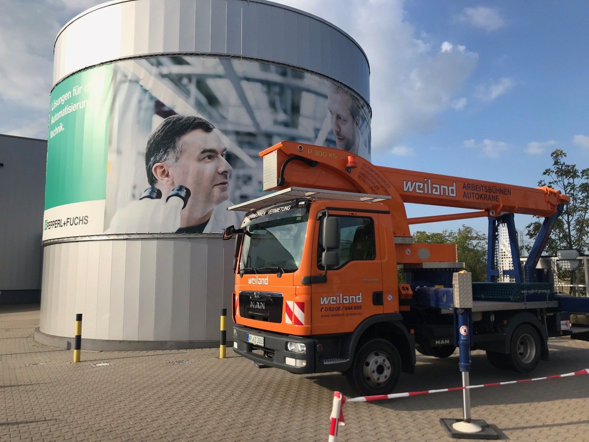 Liftsystem inkl. Großbanner und Einzelbuchstaben aus DiBond